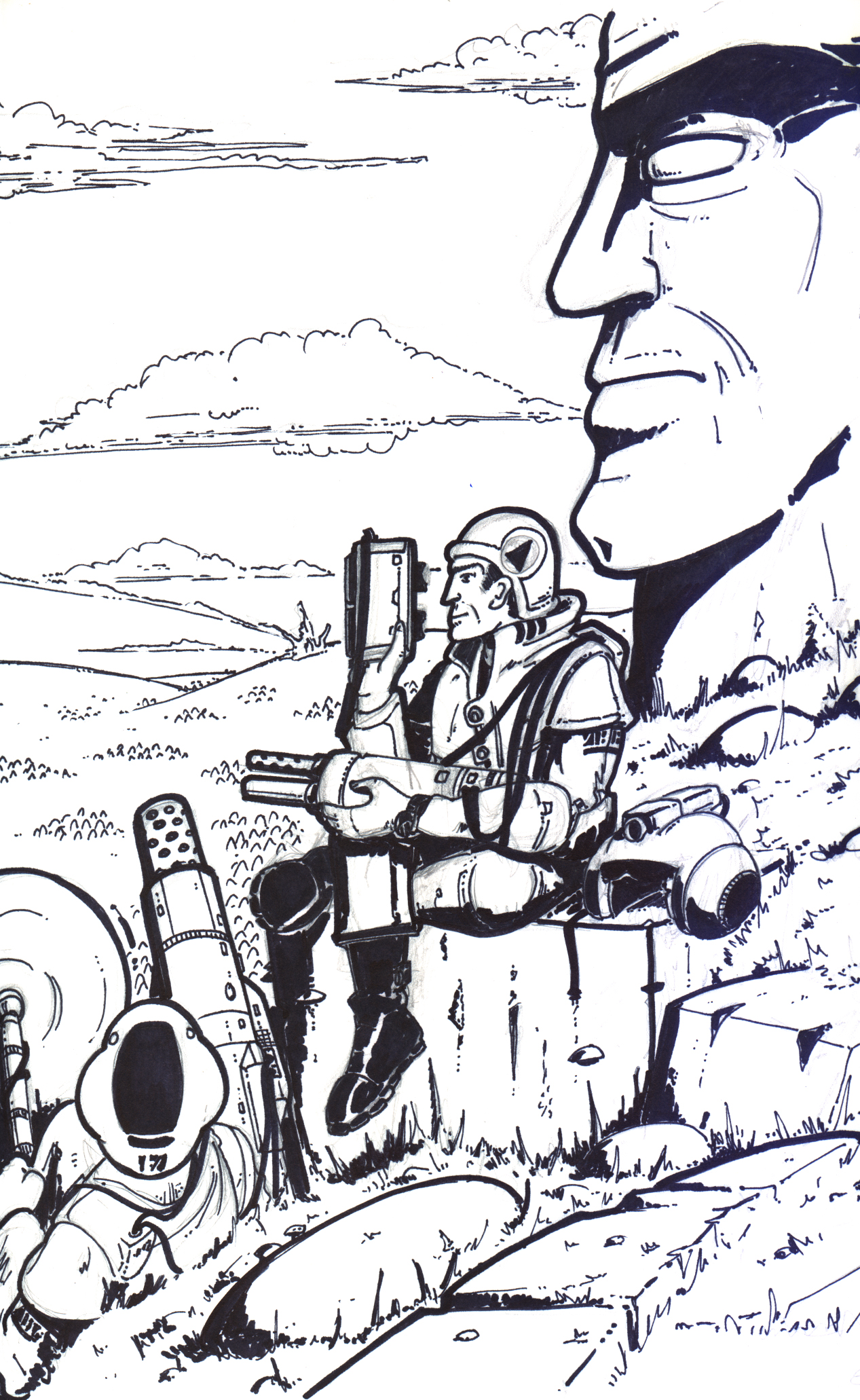 Combattants… Un vieux dessin que j’avais fait… deux combattants sur une montagne.. deux observateurs pour qui la guerre est une formalité..