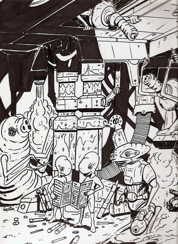 Scène de réparations… C’est pire de faire ça que de monter un meuble IKEA… bonne chance. Les instructions sont en pléiadien..
