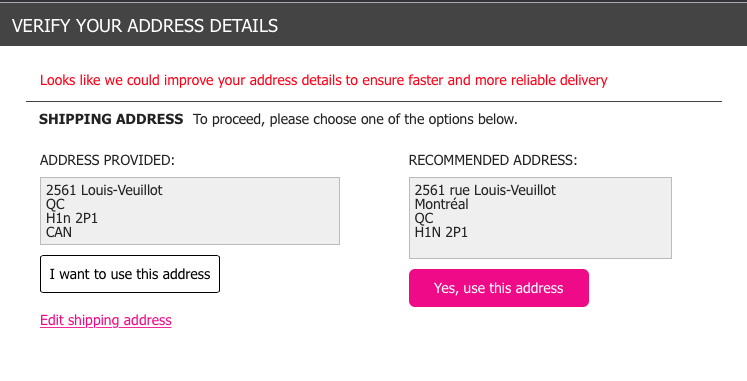 QUand ils complète l’adresse a Montréal ils ajoutent un accent..