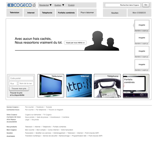 Cogeco J’ai travaillé au printemps 2010 sur le mandat de Cogeco résidentiel pour Yucentrik. Wireframe Storyboard